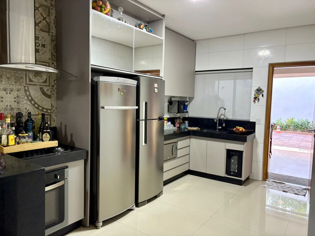 - Área gourmet com fogão, depurador de ar, churrasqueira, armários da cozinha, sala com painel, energia solar, boiler para água aquecida, lavanderia, ducha e quintal.